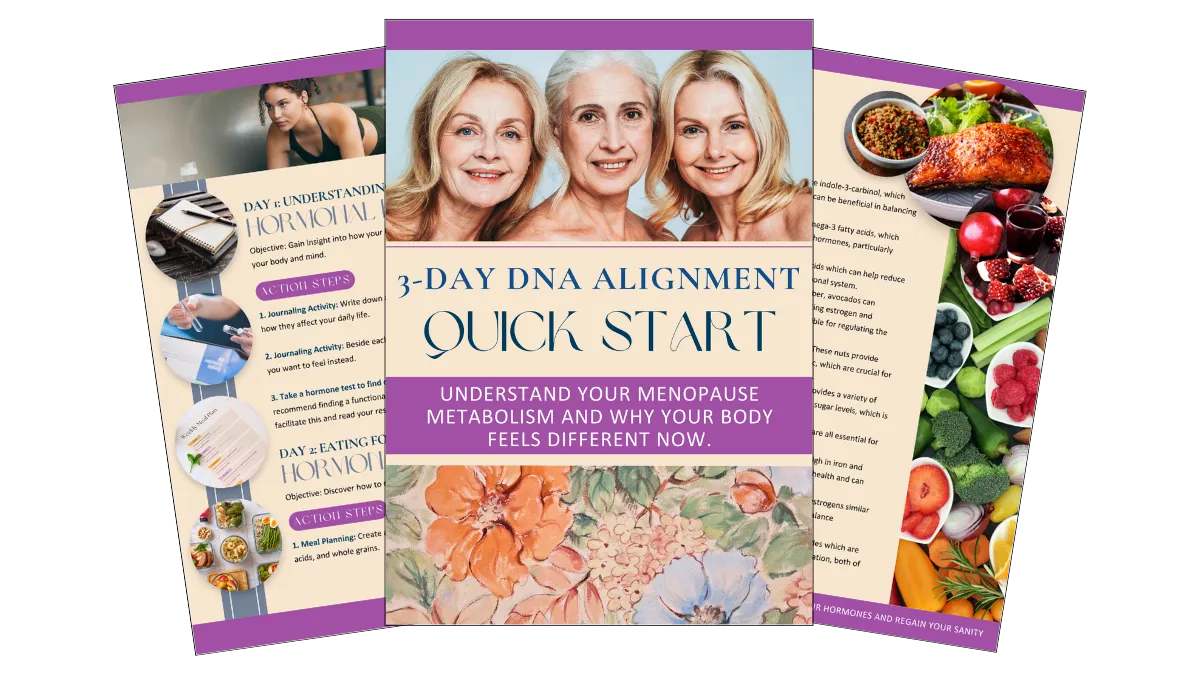 Start with my FREE 3-Day DNA Alignment Quick Start and understand how your menopause metabolism and hormones actually work, so weight loss and wellbeing finally make sense.