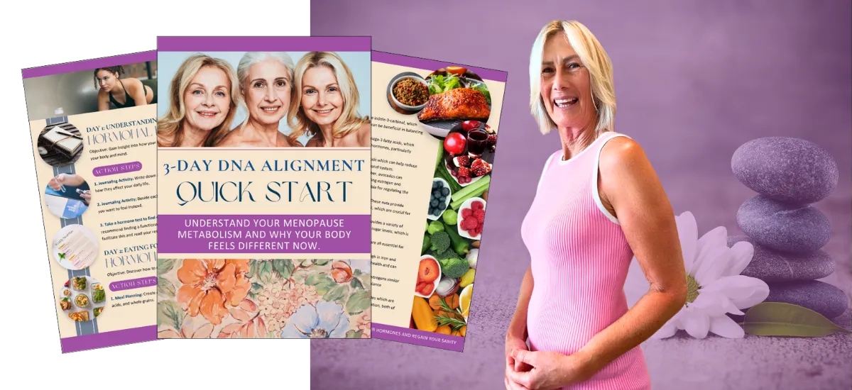 Start with my FREE 3-Day DNA Alignment Quick Start and understand how your menopause metabolism and hormones actually work, so weight loss and wellbeing finally make sense.